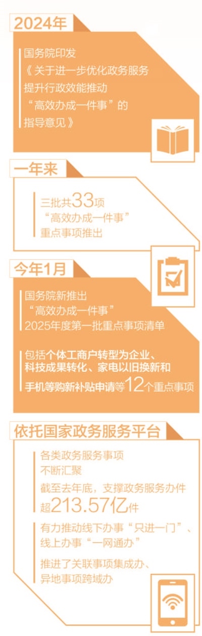 政府工作報(bào)告提出,“健全‘高效辦成一件事’重點(diǎn)事項(xiàng)清單管理和常態(tài)化推進(jìn)機(jī)制,完善覆蓋全國的一體化在線政務(wù)服務(wù)平臺(tái)?!?/p>