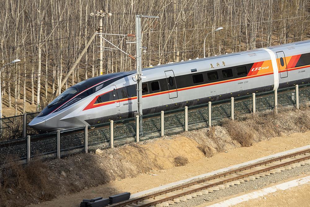 △2025年2月15日,中國(guó)鐵道科學(xué)院試驗(yàn)中心環(huán)形試驗(yàn)場(chǎng),復(fù)興號(hào)CR450型電力動(dòng)車(chē)組進(jìn)場(chǎng)展開(kāi)測(cè)試。