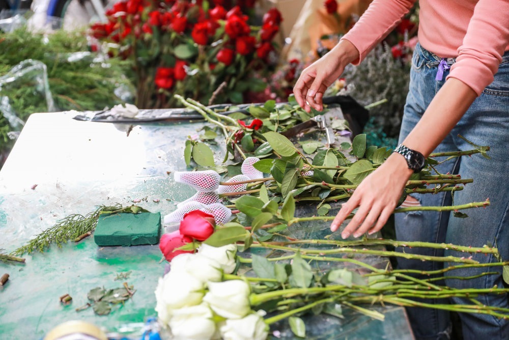 2019年2月14日,在泰國曼谷帕空鮮花市場(chǎng)的一家花店,工作人員將從云南進(jìn)口的鮮花制作成花束和花盒。東南亞是云南花卉的傳統(tǒng)市場(chǎng),在“一帶一路”倡議推動(dòng)下,中國與東南亞國家相互開放的產(chǎn)業(yè)合作,為雙方商貿(mào)活動(dòng)注入新動(dòng)力。隨著昆曼國際大通道打通,經(jīng)過采摘、分級(jí)、修枝、包裝、拍賣等過程,云南鮮花只需近40小時(shí)的冷鏈運(yùn)輸便可抵達(dá)曼谷。
