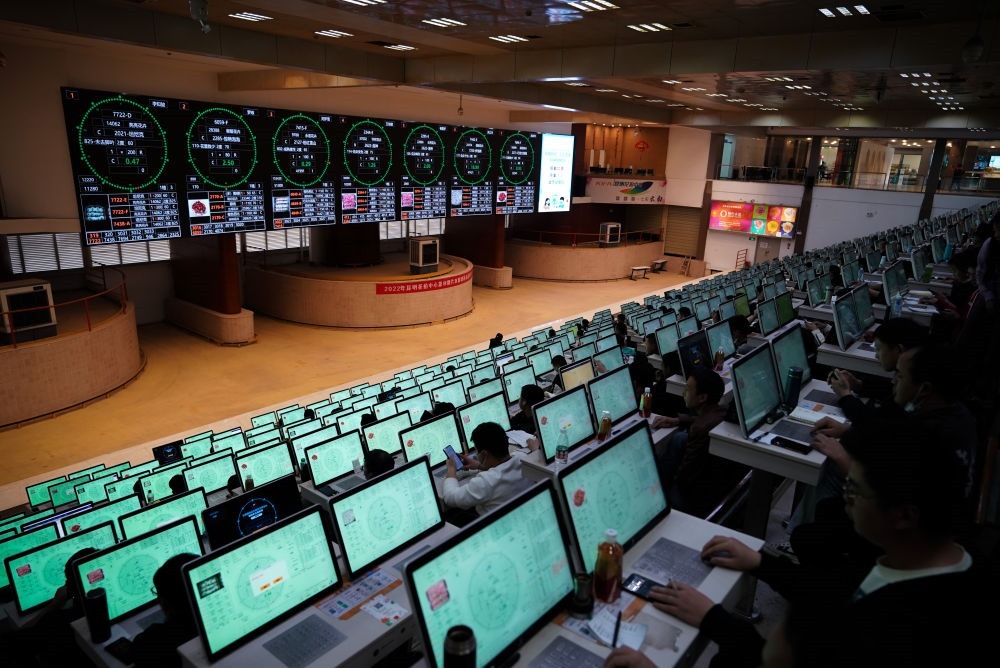 2022年11月11日,花商在云南省昆明市國際花卉拍賣交易中心參加鮮花競(jìng)拍。
