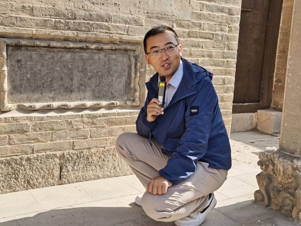 從“古建粉”到從業(yè)者,“80后”楊杰用自己的創(chuàng)業(yè)經(jīng)歷,展現(xiàn)出傳統(tǒng)文化在新時代的實踐可能。他創(chuàng)立的晉行記研學中心,聘請專業(yè)人士深入講解,為喜愛古建的游客提供“沉浸式”研學體驗。這是2023年5月20日,楊杰帶領游客在山西長治參觀淳化寺古跡。