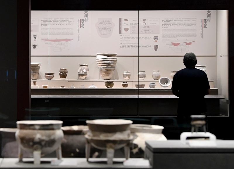 6月14日,參觀者在大河村遺址博物館新館參觀。