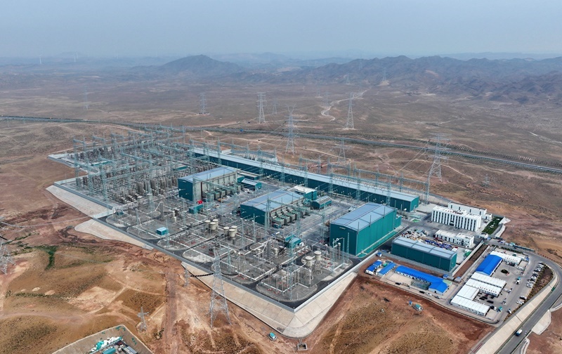 這是6月24日拍攝的“寧電入湘”工程寧夏中衛(wèi)市中寧換流站(無(wú)人機(jī)照片)。