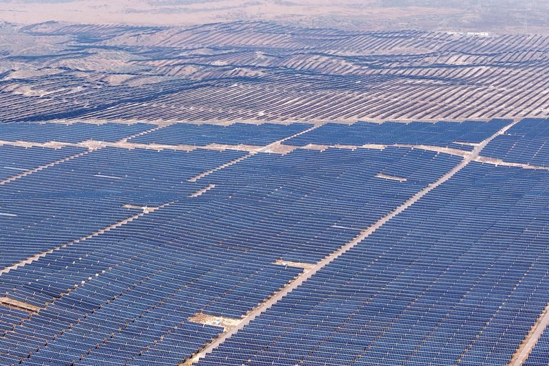 這是6月29日拍攝的“寧電入湘”工程寧夏中衛(wèi)市光伏發(fā)電基地(無(wú)人機(jī)照片)。