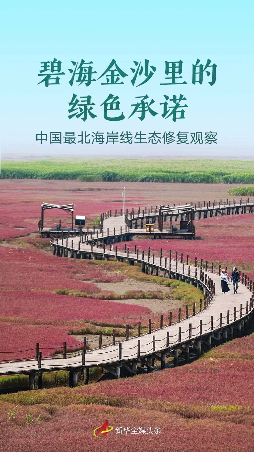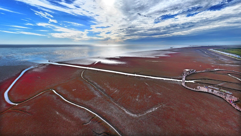 遼寧海濱,北緯39度的海風掠過浮光躍動的海灣,丹頂鶴在紅海灘間蹁躚起舞;海岸線上,執(zhí)法船在巡航,電子眼守護著潔凈的沙灘;沙灘上,志愿者拾起漂浮的塑料瓶……交織成一幅動人的生態(tài)畫卷。
