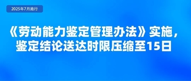 人力資源社會(huì)保障部、國(guó)家衛(wèi)生健康委聯(lián)合印發(fā)的《勞動(dòng)能力鑒定管理辦法》,自2025年7月1日起施行?!掇k法》明確,工傷職工和因病或非因工致殘申請(qǐng)領(lǐng)取病殘津貼人員申請(qǐng)勞動(dòng)能力鑒定適用本辦法。勞動(dòng)能力鑒定分為初次鑒定和再次鑒定,對(duì)初次鑒定不服可以申請(qǐng)?jiān)俅舞b定,再次鑒定為最終結(jié)論?!掇k法》強(qiáng)調(diào),要加強(qiáng)便民服務(wù),減少不必要材料,信息共享能夠獲取的申請(qǐng)材料不得要求申請(qǐng)人重復(fù)提交;壓縮鑒定時(shí)限,將結(jié)論送達(dá)時(shí)限從20日壓縮至15日;加強(qiáng)無(wú)障礙環(huán)境建設(shè),完善無(wú)障礙服務(wù)設(shè)施設(shè)備。