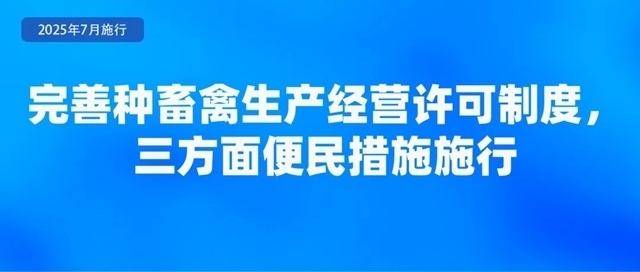 農(nóng)業(yè)農(nóng)村部公布了《種畜禽生產(chǎn)經(jīng)營(yíng)許可管理辦法》,于2025年7月1日起實(shí)施?!掇k法》規(guī)定了三方面便民措施。一是統(tǒng)一平臺(tái)辦理。種畜禽生產(chǎn)經(jīng)營(yíng)許可證的申請(qǐng)、受理、審核、核發(fā),統(tǒng)一在中國(guó)種業(yè)大數(shù)據(jù)平臺(tái)辦理,平臺(tái)提供查詢(xún)、核驗(yàn)等功能,并與全國(guó)一體化在線(xiàn)政務(wù)服務(wù)平臺(tái)對(duì)接。二是統(tǒng)一有效期。《辦法》將有效期統(tǒng)一確定為5年,并明確已取得的種畜禽生產(chǎn)經(jīng)營(yíng)許可證有效期不變,到期后按照新規(guī)定辦理。三是簡(jiǎn)化變更手續(xù)。對(duì)變更生產(chǎn)經(jīng)營(yíng)者名稱(chēng)、法定代表人(負(fù)責(zé)人)以及從事父母代種畜禽(含品種和配套系)和商品代仔畜、雛禽生產(chǎn)經(jīng)營(yíng),需要變更其生產(chǎn)經(jīng)營(yíng)的畜禽品種的,向原發(fā)證機(jī)關(guān)提交變更申請(qǐng)表及證明材料,符合條件的,原發(fā)證機(jī)關(guān)在十五個(gè)工作日內(nèi)即予以變更。