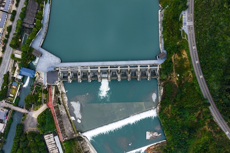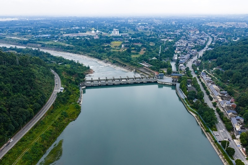 9月10日拍攝的四川彭州湔江堰(無(wú)人機(jī)照片)。