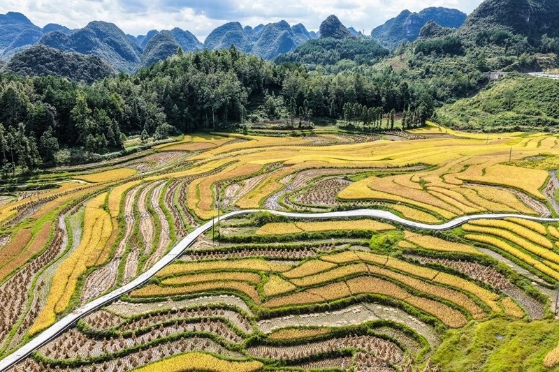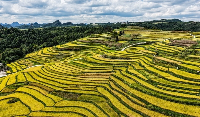 長順縣長寨街道中塘村的梯田風光(9月17日攝,無人機照片)。