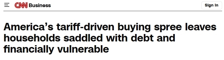 28歲的護(hù)士安妮卡·惠洛克一家為避免關(guān)稅帶來的價(jià)格沖擊,通過貸款和房屋凈值信用額度提前消費(fèi)了13.7萬美元,用于購車、家電和房屋修繕。因丈夫即將返校、退休金縮水,家庭已入不敷出。信用卡瑪(CreditKarma)的調(diào)查顯示,51%的受訪者表示自己因關(guān)稅而改變了消費(fèi)行為,18%提前進(jìn)行大額采購。即便提前囤貨,關(guān)稅推高的通脹仍會(huì)波及所有人,參與春季消費(fèi)熱潮的消費(fèi)者在經(jīng)濟(jì)上會(huì)更加脆弱。