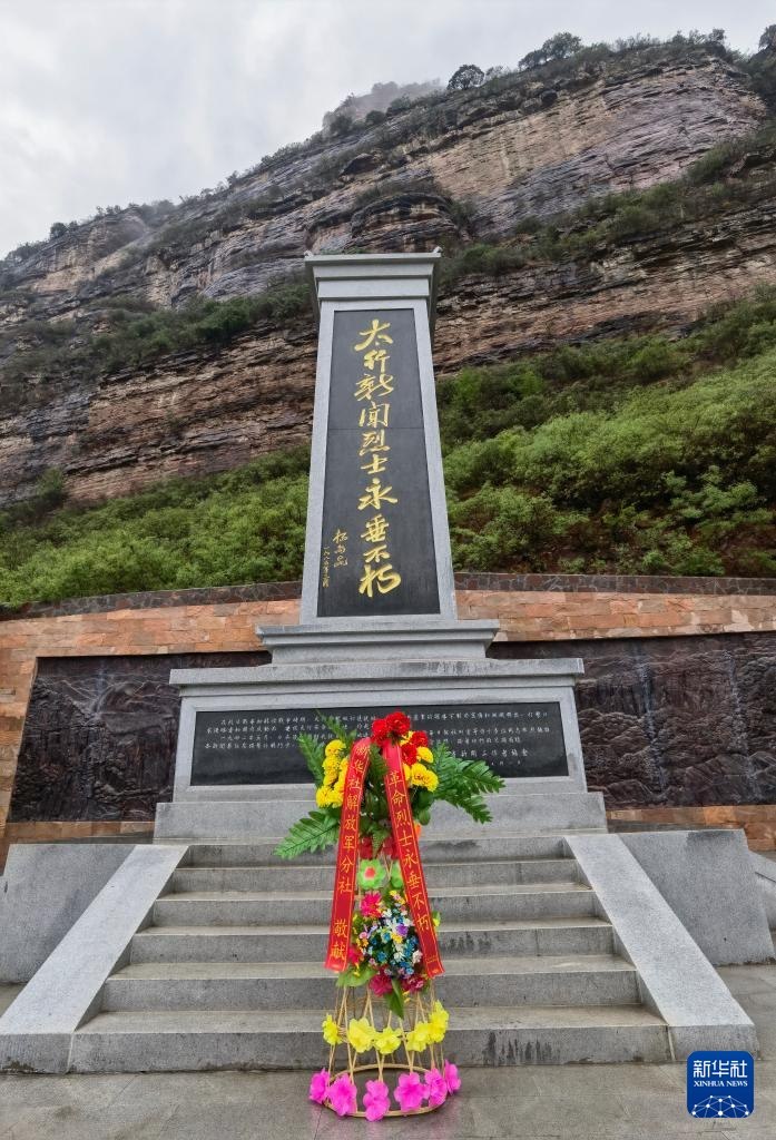 這是5月8日在山西省左權縣太行山腹地拍攝的太行新聞烈士紀念碑。新華社記者 丁增義 攝