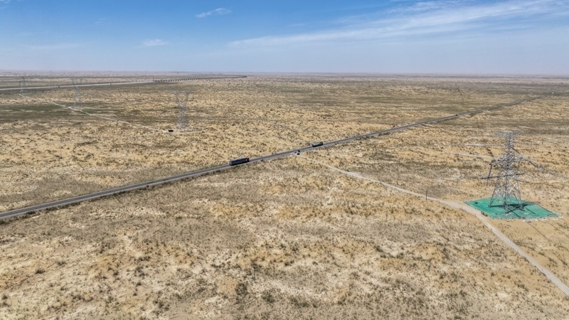 7月13日,在塔里木盆地南緣的新疆和田地區(qū)民豐縣,隨著牽引機將最后一段電線成功從183號鐵塔拽至188號鐵塔,標志著歷時15年建設(shè)的環(huán)塔里木盆地750千伏輸變電工程全線貫通,形成了一條圍繞塔里木盆地的750千伏超高壓輸電環(huán)網(wǎng)。