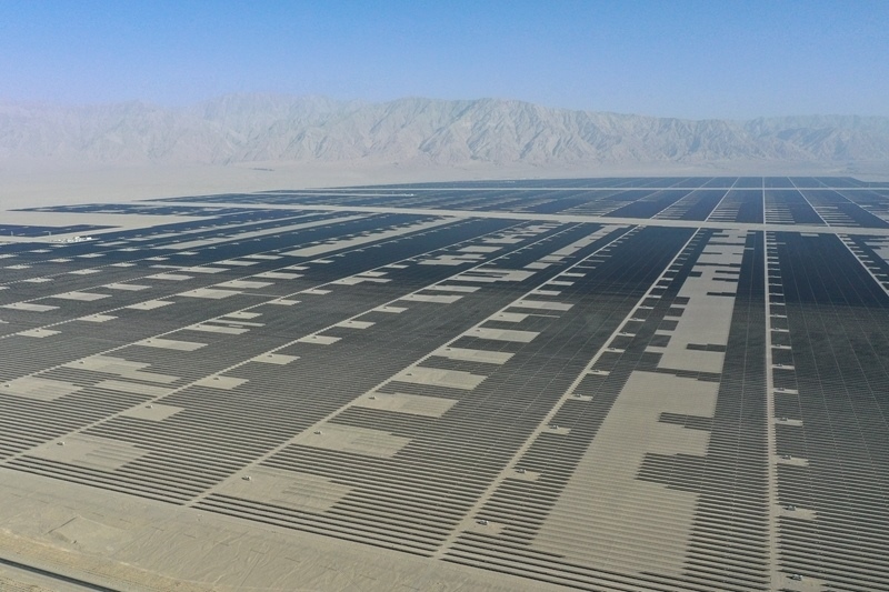 這是中國綠發(fā)新疆中綠電若羌400萬千瓦光伏項目(6月26日攝,無人機照片)。