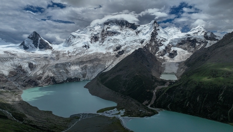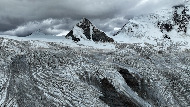 7月19日拍攝的薩普雪山及延伸的冰川(無人機照片)。