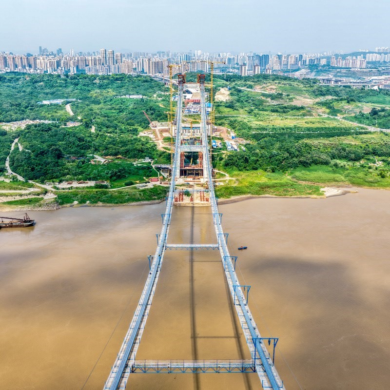當日,由重慶城投集團投資、城投建設(shè)公司組織建設(shè)、中國鐵建大橋局承建的黃桷沱長江大橋順利完成主纜架設(shè)工作,標志著大橋建設(shè)即將進入鋼桁梁吊裝工序。黃桷沱長江大橋全長1260米,主跨765米,為單跨懸吊雙塔三跨連續(xù)鋼桁梁懸索橋,是國內(nèi)最大跨徑公軌兩用懸索橋。黃桷沱長江大橋是渝長高速復(fù)線連接道工程的控制性節(jié)點工程,建成后將成為聯(lián)系重慶主城區(qū)長江南北兩岸的重要交通干道。