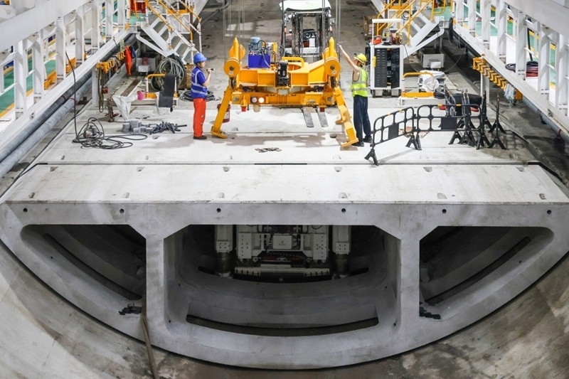 8月1日,施工人員檢查管片吊運機工作狀況。