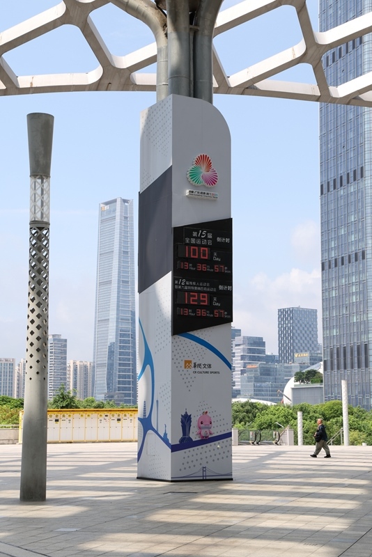 這是8月1日在深圳灣體育中心拍攝的第十五屆全國運動會倒計時牌。