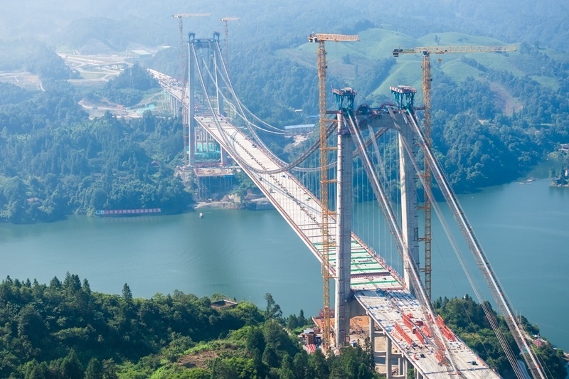 當(dāng)日,隨著最后一段200余噸重的鋼混結(jié)合梁被緩緩提升,由湖南路橋建設(shè)集團(tuán)承建的張官高速控制性工程洞庭溪沅水特大橋主橋順利合龍,為2026年全線通車奠定了堅實基礎(chǔ)。據(jù)了解,洞庭溪沅水特大橋位于湖南懷化市沅陵縣境內(nèi),全長1707米,主橋長800米,為雙塔單跨懸索橋。