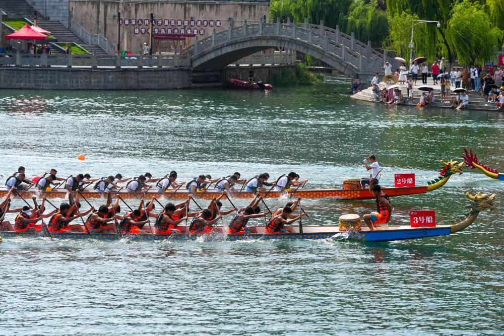 龍舟在本次世運會上首次成為正式比賽項目,這也符合世運會設(shè)項突出地域特色的特點。圖為貴州省黔東南苗族侗族自治州鎮(zhèn)遠縣?陽河上的龍舟比賽。新華社發(fā)(龍建睿攝)