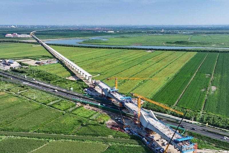8月9日凌晨,由中鐵十四局承建的津?yàn)H高鐵東壽特大橋跨榮烏高速連續(xù)梁成功合龍。該連續(xù)梁位于山東壽光,是津?yàn)H高鐵山東段最大跨度連續(xù)梁,主跨長168米。