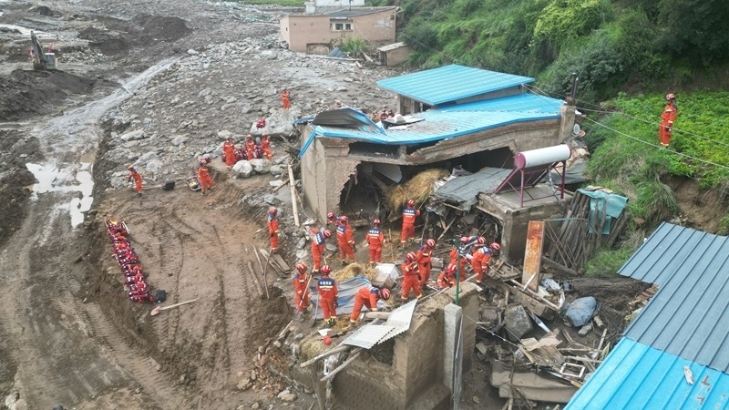 8月10日,國(guó)家綜合性消防救援隊(duì)伍救援人員在甘肅省榆中縣馬坡鄉(xiāng)馬蓮灘村、舊莊溝村和城關(guān)鎮(zhèn)興隆山村等區(qū)域持續(xù)搜救失聯(lián)人員。