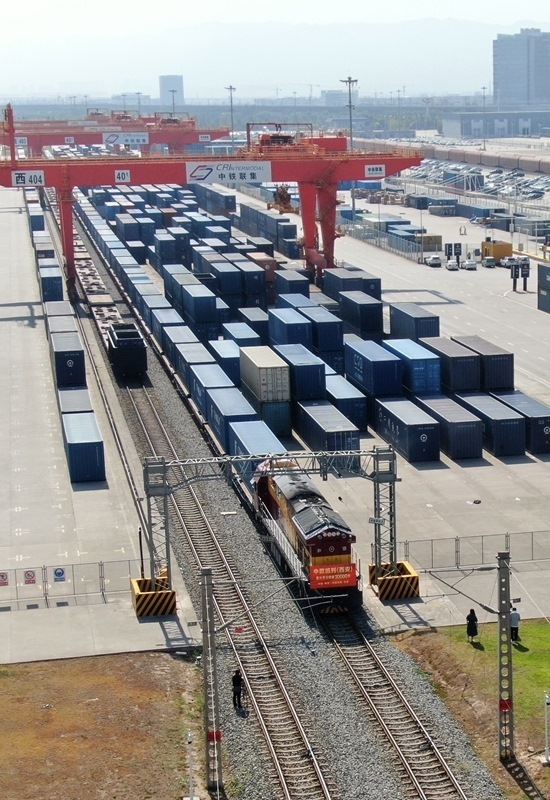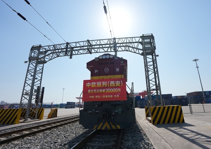 當(dāng)日上午,滿載著55個(gè)集裝箱光伏組件的X9043次中歐班列從西安國(guó)際港站駛出,開往阿塞拜疆巴庫,標(biāo)志著中歐班列(西安)自2013年開行首列以來累計(jì)開行突破30000列,開行總量超過全國(guó)中歐班列累計(jì)開行總量的四分之一。西安國(guó)際港站也成為了全國(guó)首個(gè)中歐班列開行量突破30000列的車站,開行量、貨運(yùn)量、重箱率等核心指標(biāo)位居全國(guó)第一。