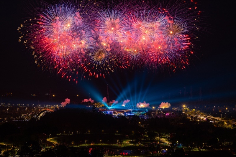 這是8月17日拍攝的閉幕式上的焰火表演。