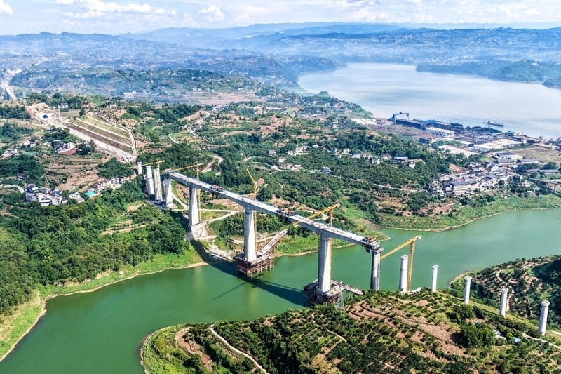 當(dāng)日,由中國(guó)鐵建大橋局承建的重慶至萬(wàn)州高速鐵路(渝萬(wàn)高鐵)渠溪河雙線(xiàn)特大橋順利合龍。渝萬(wàn)高鐵渠溪河雙線(xiàn)特大橋位于重慶市涪陵區(qū)珍溪鎮(zhèn),橫跨長(zhǎng)江支流渠溪河,全長(zhǎng)約953米,是全線(xiàn)重難點(diǎn)工程。