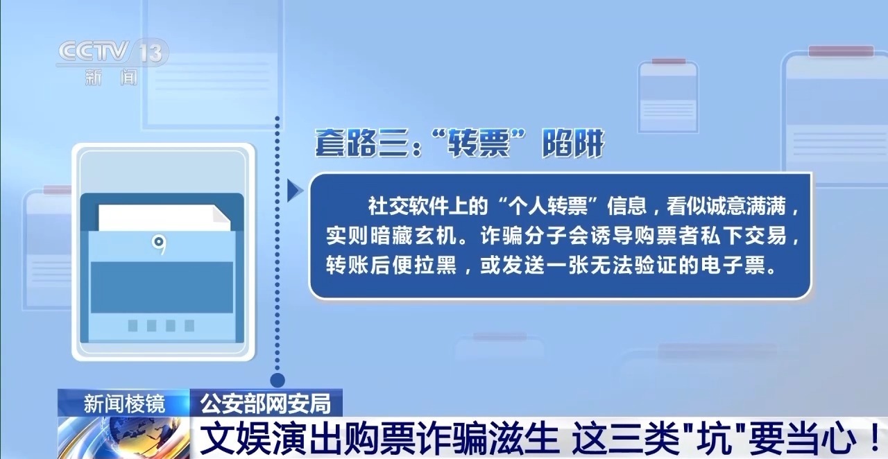 近期,文娛演出市場可謂熱度爆表,但在音樂狂歡的背后,各類購票詐騙陷阱也悄然滋生。公安部網(wǎng)安局發(fā)布提示,這幾類購票陷阱一定要小心,避免票務詐騙那些“坑”。