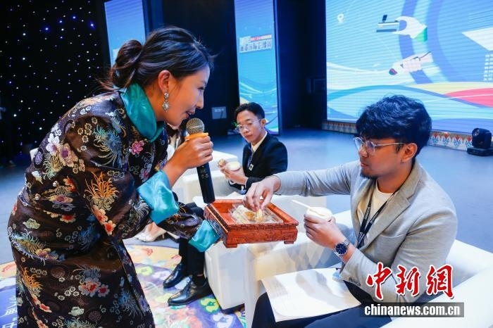 2024年8月18日,“同飲一江水 光影耀瀾湄”2024瀾湄國(guó)際影像周在青海省玉樹藏族自治州玉樹市正式啟動(dòng)。圖為來(lái)自瀾滄江-湄公河流域國(guó)家的6名青年代表品嘗玉樹酸奶、奶酪等當(dāng)?shù)靥厣r(nóng)畜產(chǎn)品。中新社記者 馬銘言 攝