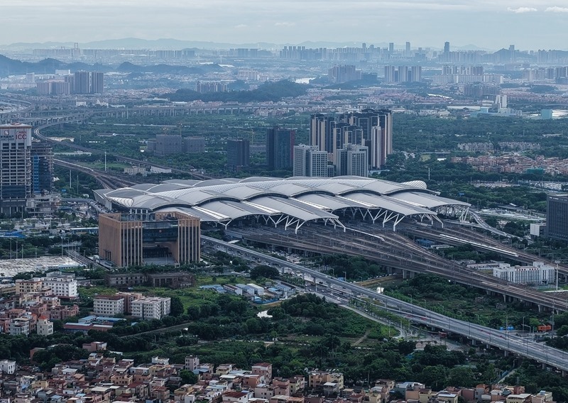 這是8月25日拍攝的廣州南站(無(wú)人機(jī)照片)。廣南聯(lián)絡(luò)線(xiàn)將從廣州南站導(dǎo)出,一站直達(dá)位于中心城區(qū)的廣州站。