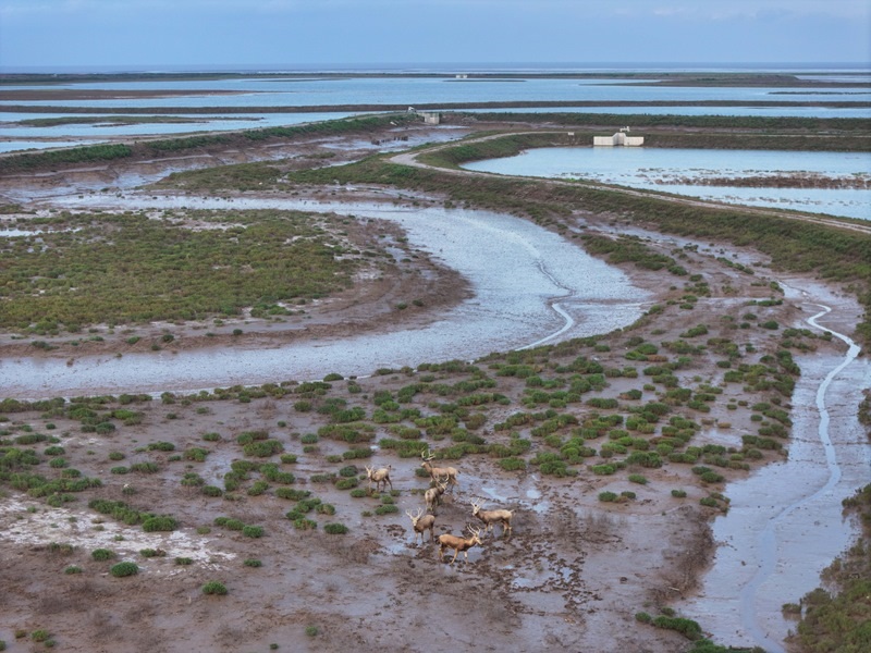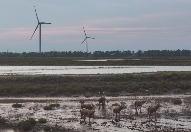 江蘇省鹽城市東臺(tái)市條子泥濕地區(qū)域總面積129萬(wàn)畝。2019年,作為中國(guó)黃(渤)海候鳥(niǎo)棲息地(第一期)重要組成部分被列入世界遺產(chǎn)名錄。近年來(lái),條子泥濕地秉承“基于自然的解決方案”理念,開(kāi)展了川水灣海岸帶生態(tài)保護(hù)項(xiàng)目,并在東臺(tái)海堤西側(cè)專(zhuān)門(mén)辟出720畝魚(yú)塘,打造了國(guó)內(nèi)第一塊固定高潮位棲息地。生態(tài)保護(hù)修復(fù)工程的實(shí)施使條子泥一些珍稀物種種群數(shù)量屢創(chuàng)新高,大批的水鳥(niǎo)、成群的麋鹿等野生動(dòng)物在此“落戶(hù)”,濕地修復(fù)初顯成效。