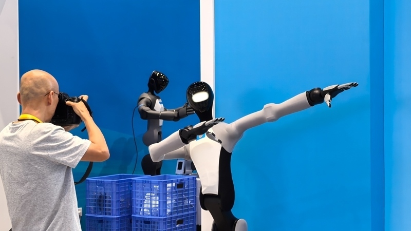 8月30日,一臺(tái)展示雙臂自由度的機(jī)器人在2025年上海合作組織峰會(huì)新聞中心吸引攝影師拍照。