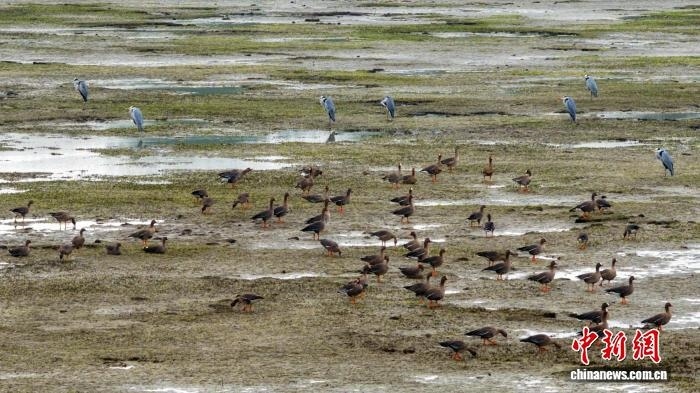 據(jù)江西鄱陽湖國家級自然保護區(qū)管理局湖口保護監(jiān)測站站長高新介紹,目前鄱陽湖湖口水域已發(fā)現(xiàn)數(shù)百只白額雁、小白額雁、豆雁等雁類候鳥的蹤跡,相比去年候鳥抵達時間推遲了近半個月。