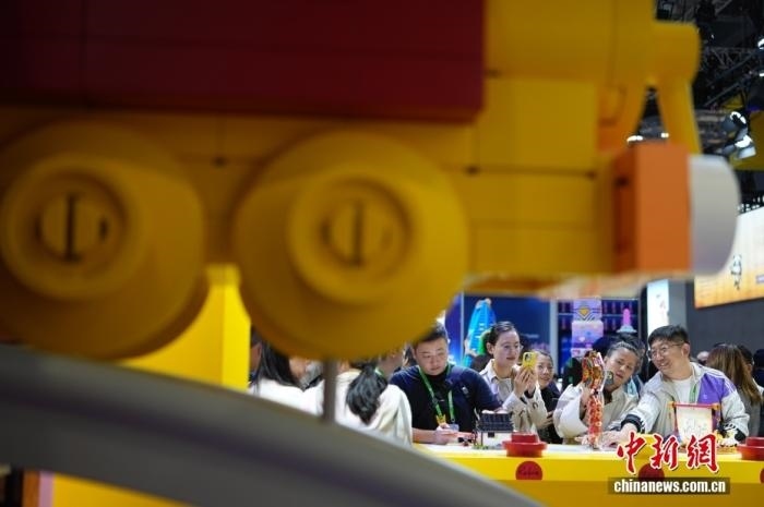 11月6日,上海,第八屆中國(guó)國(guó)際進(jìn)口博覽會(huì)消費(fèi)品展區(qū)人氣旺。圖為樂(lè)高展臺(tái)吸引參觀者。中新社記者 蔣啟明 攝