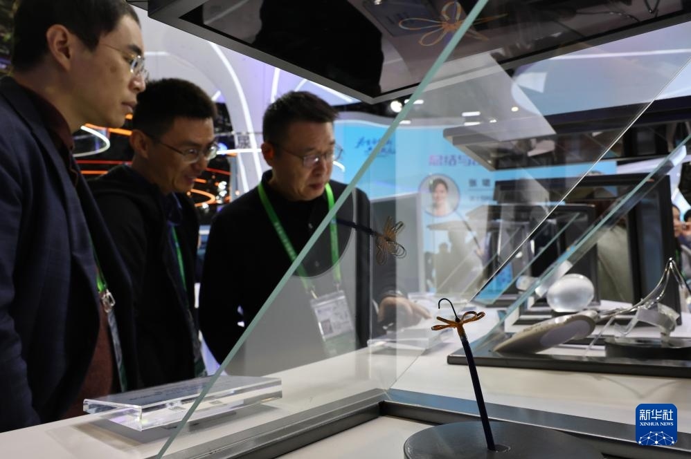 11月6日,參觀者在美敦力公司一款超硬導(dǎo)絲產(chǎn)品展臺(tái)前駐足觀看,這是該產(chǎn)品的全球首展。
