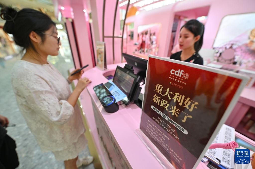 11月9日,外國顧客在三亞國際免稅城選購商品。新政將適用人群擴(kuò)至離境旅客。