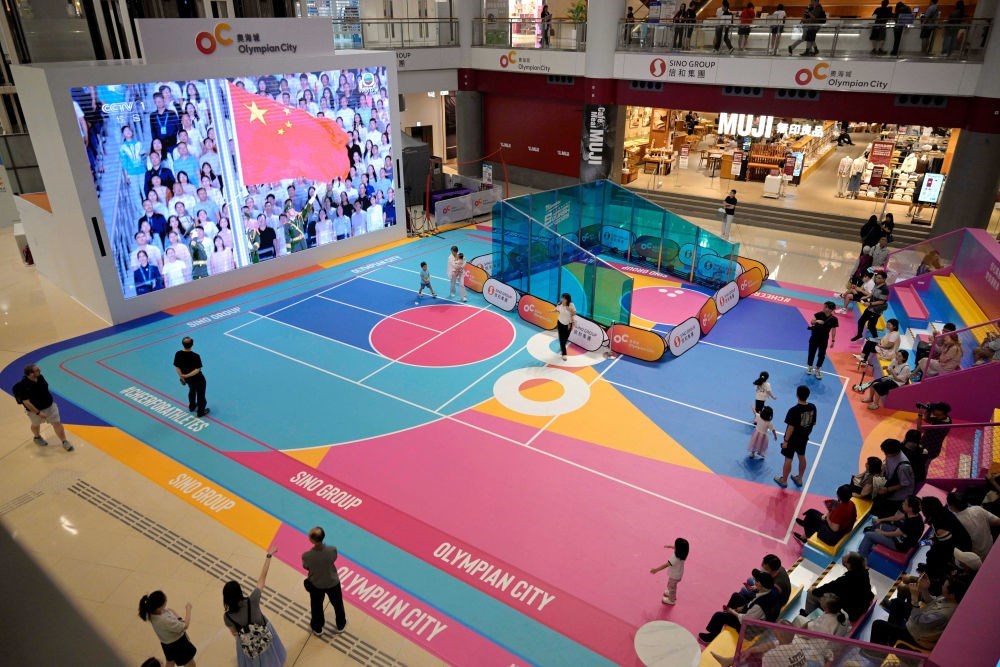 11月9日,第十五屆全國運(yùn)動(dòng)會(huì)開幕式在廣東奧林匹克體育中心舉行,這是香港市民在一家商場內(nèi)觀看直播。新華社發(fā)(盧炳輝 攝)