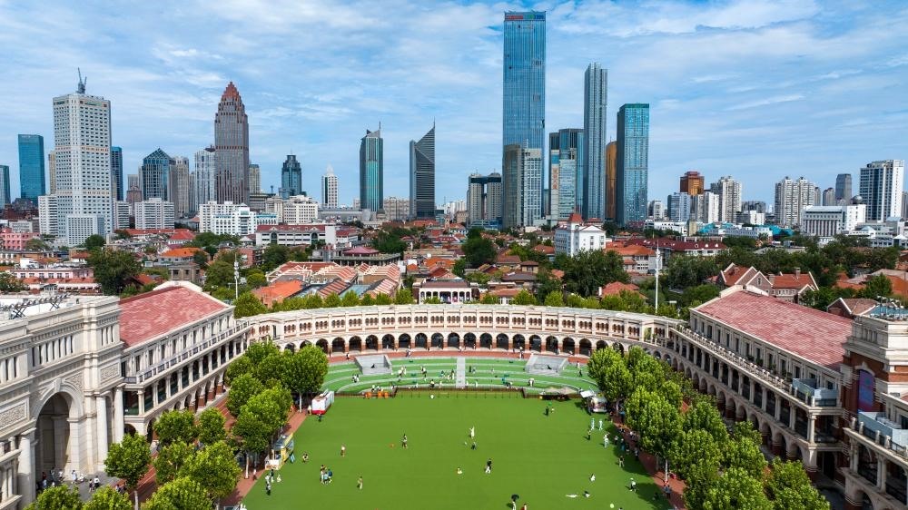 這是8月28日拍攝的位于天津五大道歷史文化街區(qū)的民園廣場(chǎng)(無(wú)人機(jī)照片)。新華社記者 趙子碩 攝