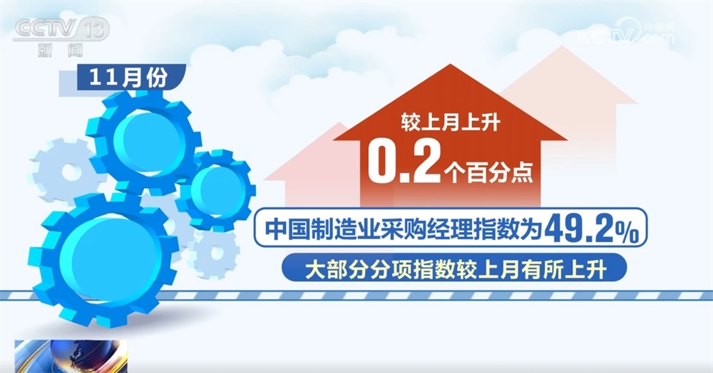 11月份中國制造業(yè)采購經(jīng)理指數(shù)為49.2%,較上月上升0.2個百分點,大部分分項指數(shù)較上月有所上升。
