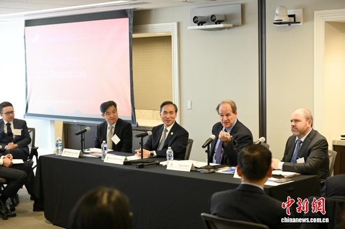 當(dāng)?shù)貢r(shí)間12月3日,華盛頓,中國貿(mào)促會(huì)組織中國企業(yè)家代表團(tuán)與美中貿(mào)易全國委員會(huì)及其會(huì)員企業(yè)交流座談。中新社記者 陳孟統(tǒng) 攝