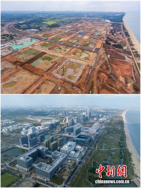 2025年12月18日,海南自由貿(mào)易港正式啟動(dòng)全島封關(guān)。近年來,海南自貿(mào)港建設(shè)在利好政策帶動(dòng)下不斷刷新“自貿(mào)港速度”,一個(gè)個(gè)重大項(xiàng)目、重點(diǎn)園區(qū)拔地而起,直觀呈現(xiàn)海南自貿(mào)港的蓬勃生機(jī)。這里正成為中國對外開放的新前沿、互利合作的新熱土和推動(dòng)經(jīng)濟(jì)全球化的新引擎。上資料圖為2020年8月19日俯瞰三亞崖州灣科技城高新區(qū)建設(shè)現(xiàn)場,下資料圖為2025年12月9日已初具規(guī)模的三亞崖州灣科技城高新區(qū)。(拼版圖,無人機(jī)照片)