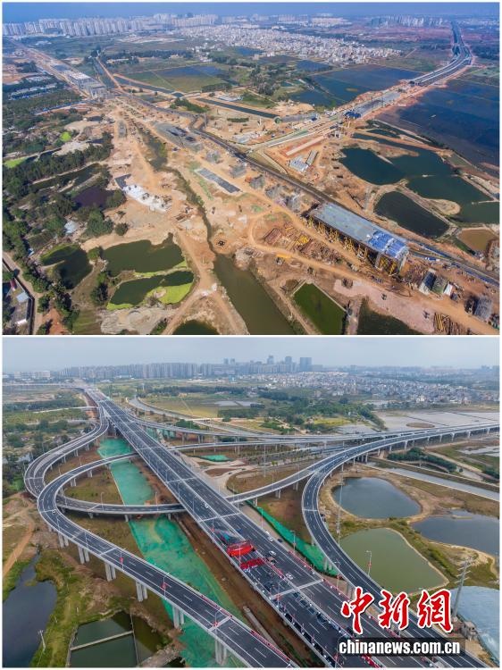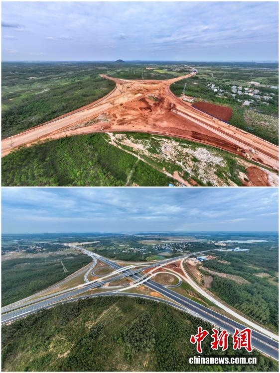 2025年12月18日,海南自由貿(mào)易港正式啟動(dòng)全島封關(guān)。近年來,海南自貿(mào)港建設(shè)在利好政策帶動(dòng)下不斷刷新“自貿(mào)港速度”,一個(gè)個(gè)重大項(xiàng)目、重點(diǎn)園區(qū)拔地而起,直觀呈現(xiàn)海南自貿(mào)港的蓬勃生機(jī)。這里正成為中國對外開放的新前沿、互利合作的新熱土和推動(dòng)經(jīng)濟(jì)全球化的新引擎。上資料圖為2021年2月6日正在建設(shè)中的G15沈海高速公路海口段項(xiàng)目海秀互通,下資料圖為2022年12月28日G15沈海高速公路海口段建成通車。(拼版圖,無人機(jī)照片)