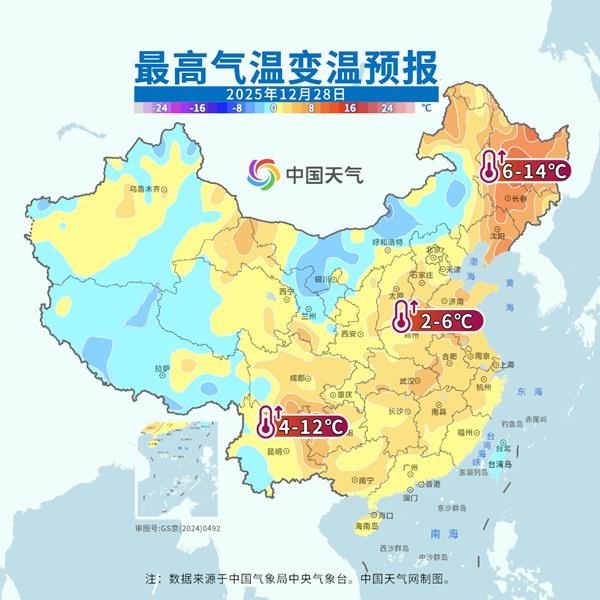 這場(chǎng)年尾超級(jí)大回暖正在席卷我國(guó)大部地區(qū),并將持續(xù)至29日。明后天,回暖幅度和范圍進(jìn)一步升級(jí),北方地區(qū)明天氣溫普遍達(dá)到高點(diǎn),南方地區(qū)將在后天(29日)前后迎來(lái)過(guò)程氣溫高點(diǎn)。其中明天,最高氣溫0℃線將同期少見地挺進(jìn)東北,并北抬至吉林中部,黃淮南部到江南普遍在15℃以上,華南也將重返20℃以上,短袖有了重新出場(chǎng)的機(jī)會(huì)。