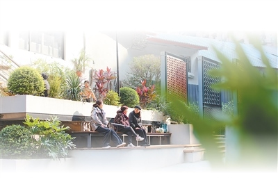 重慶市沙坪壩區(qū)沙坪壩街道一心村社區(qū),居民在更新改造后的街巷休息。孫凱芳攝(影像中國(guó))