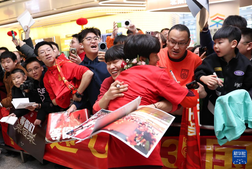 1月26日,大批球迷在機(jī)場歡迎中國隊(duì)歸來。