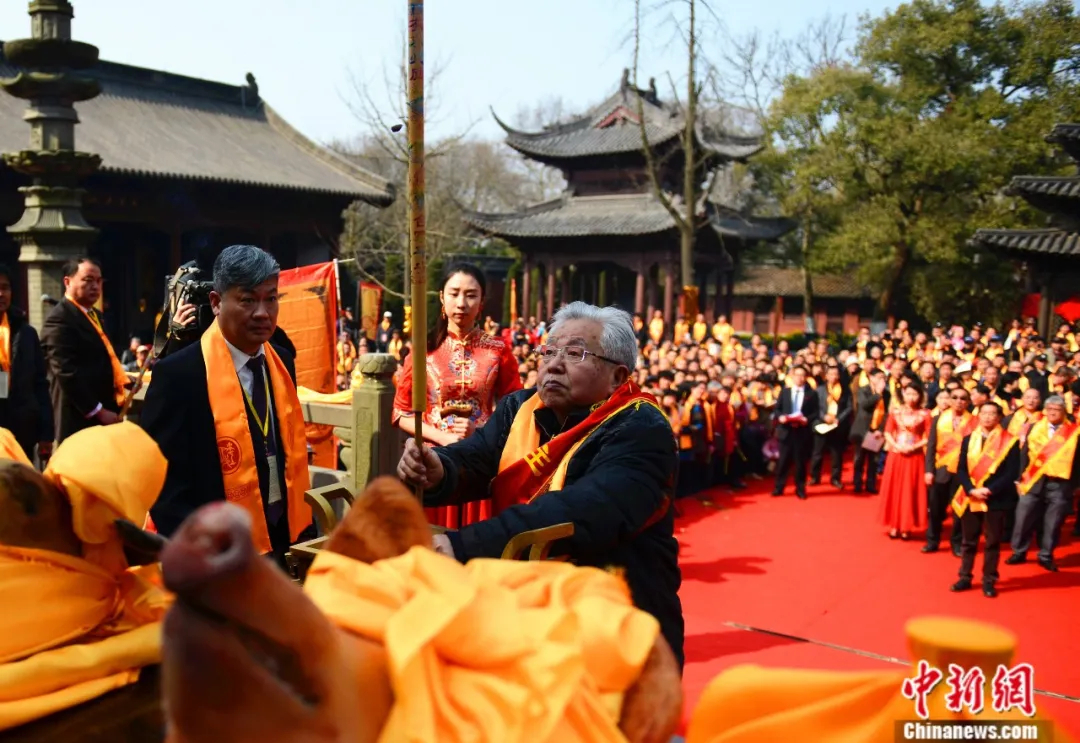 2016年2月25日,農(nóng)歷正月十八,“丙申元宵錢王祭”在浙江省杭州市錢王祠舉行。錢氏后裔按中國傳統(tǒng)禮制,祭拜錢氏先賢,祈福國運(yùn)昌盛。中新社記者 李晨韻 攝