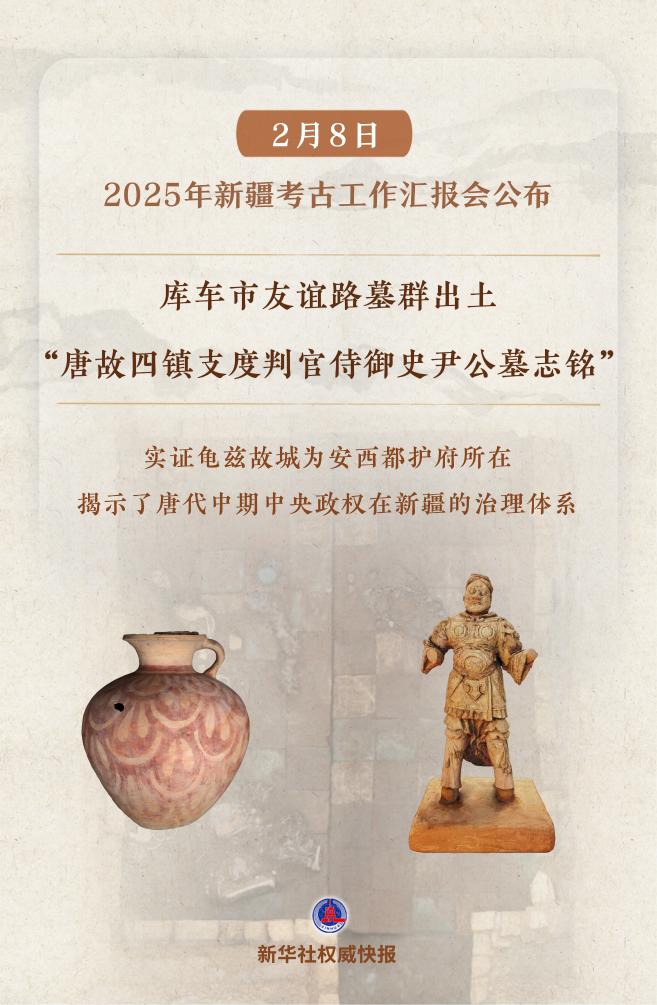 2月8日在京舉行的2025年新疆考古工作匯報(bào)會上,公布了庫車市友誼路墓群等“實(shí)證歷代中央政權(quán)有效管轄治理新疆”考古新發(fā)現(xiàn)。