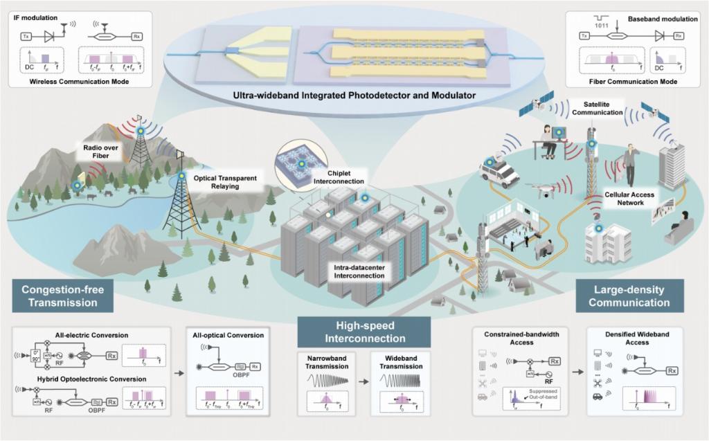 AI數(shù)據(jù)中心算力提升和下一代無(wú)線通信網(wǎng)絡(luò)6G的蓬勃發(fā)展,要求在多樣化場(chǎng)景滿足信號(hào)的高速、低時(shí)延傳輸。然而,光纖通信與無(wú)線通信在信號(hào)架構(gòu)與硬件約束上存在“帶寬鴻溝”。