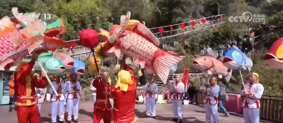 記者身后的九鯉湖景區(qū),湖光山色、層巒疊翠,展現出南方山岳特有的靈秀。景區(qū)里最熱門的打卡點之一,叫做“一線天”。這里最窄處不到30厘米,一次只能容一人貼壁通過,游客需要側身慢慢穿行,在狹窄石縫間體驗攀登的樂趣。記者身旁正在巡游的就是當地的非遺——店下魚燈。大家看,一盞盞彩繪魚燈隨著隊伍前進上下擺動,像魚兒在水里游,特別靈動。在過去,漁民會用魚燈祈愿出海平安、豐衣足食。過年的時候看魚燈,也寓意“年年有余、風調雨順”。